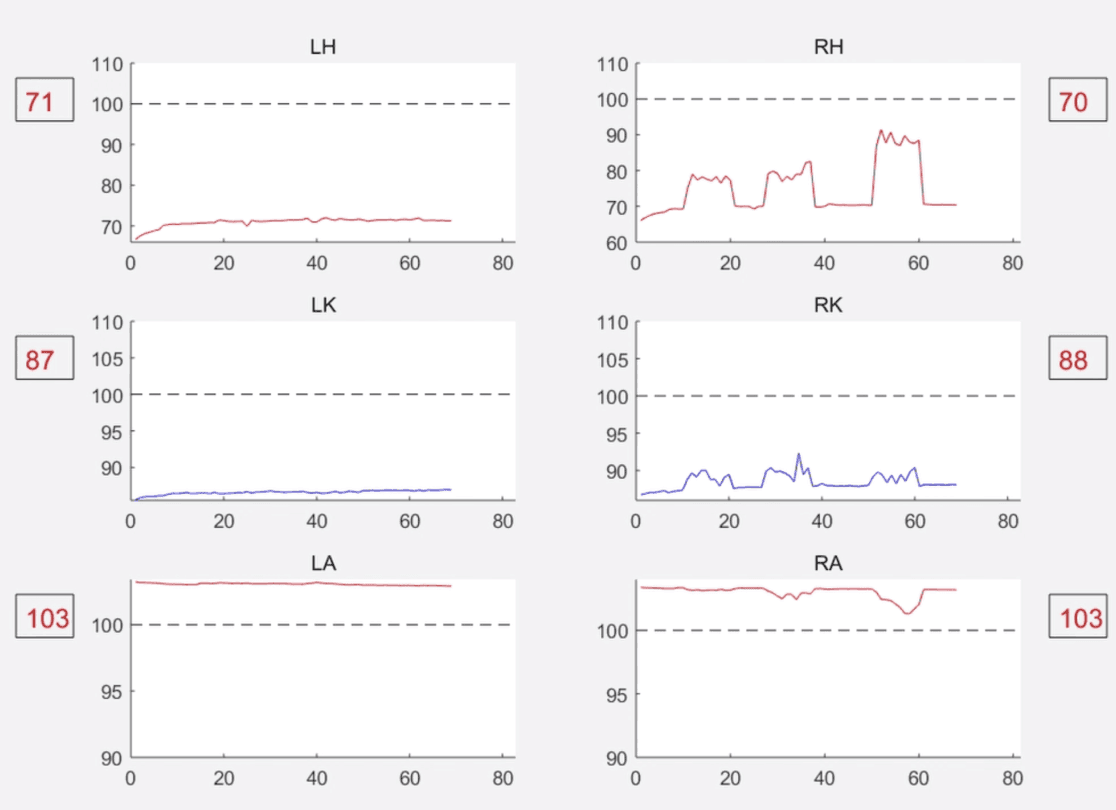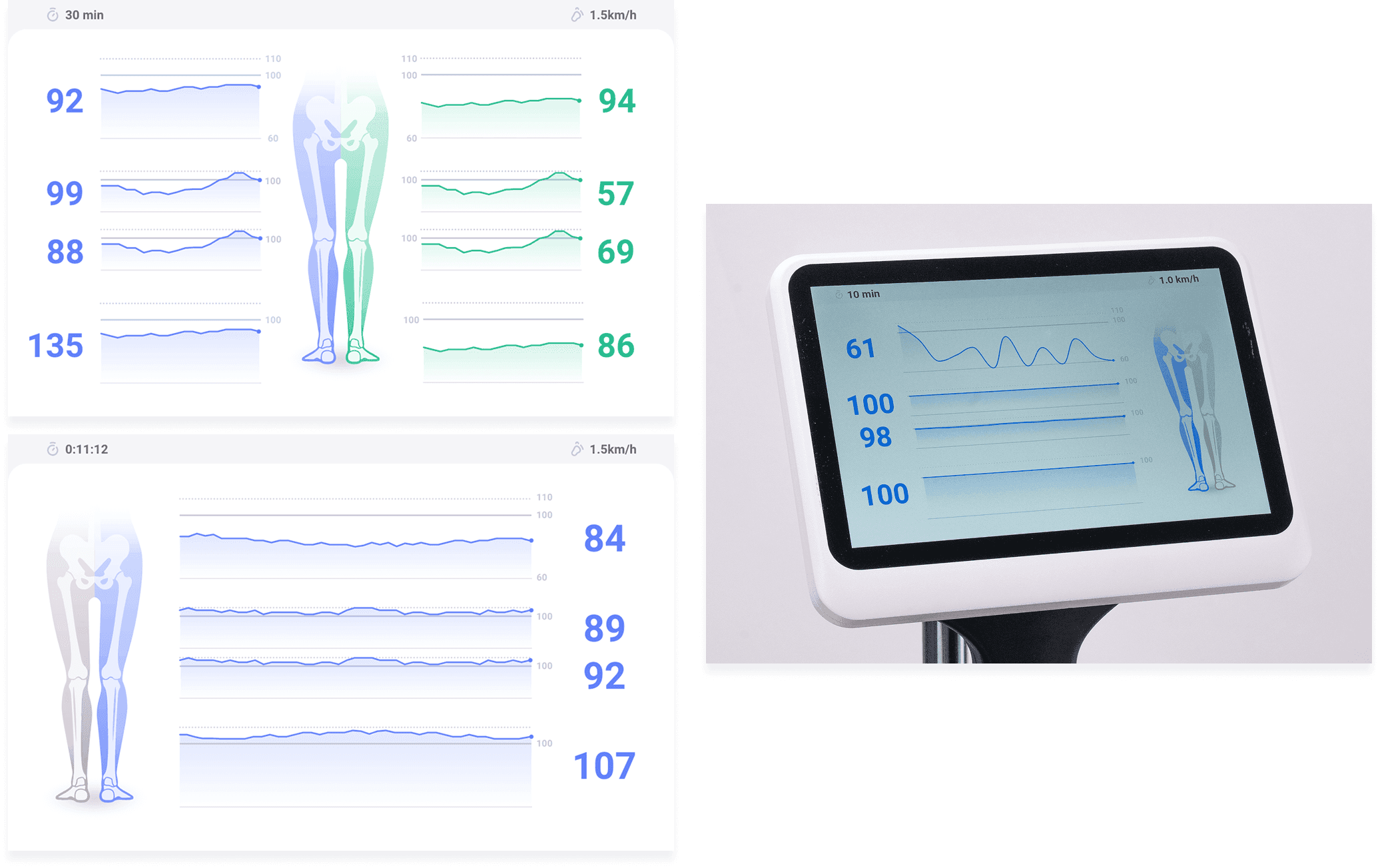 The patient-facing tablet was required to display real-time movement scores and curves across hip, knee, and ankle joints. The original requirement presented the data at clinical density — the same level of detail used by doctors.