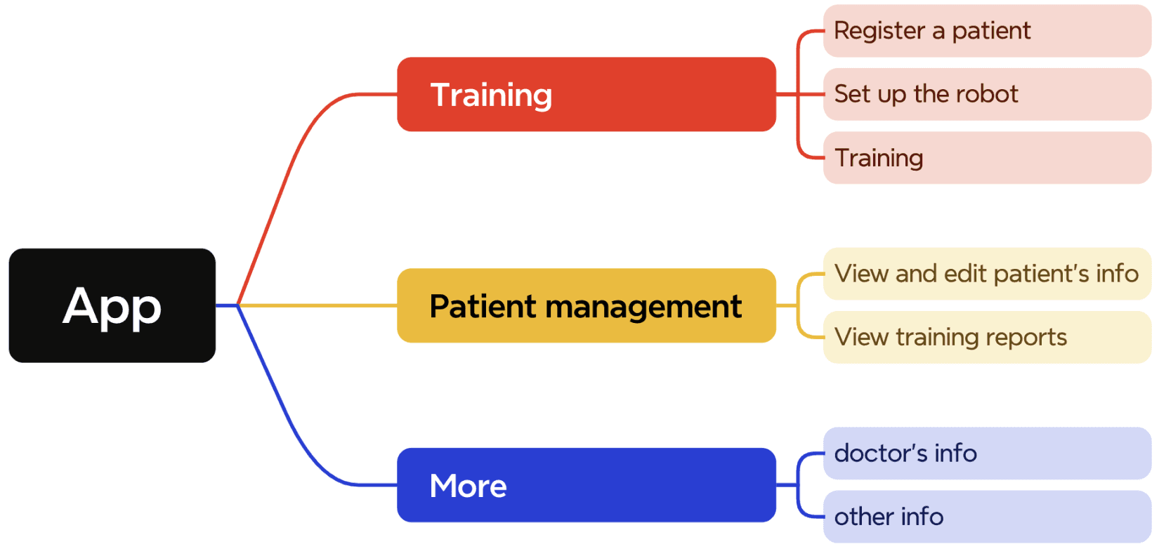 The original structure divided the app by roles, but doctors open the app with one goal: to train a patient. I reorganised the entire experience around this primary task, restructuring the app into three clear sections — Training, Patient Management, and More — so the most important workflow is always front and centre.